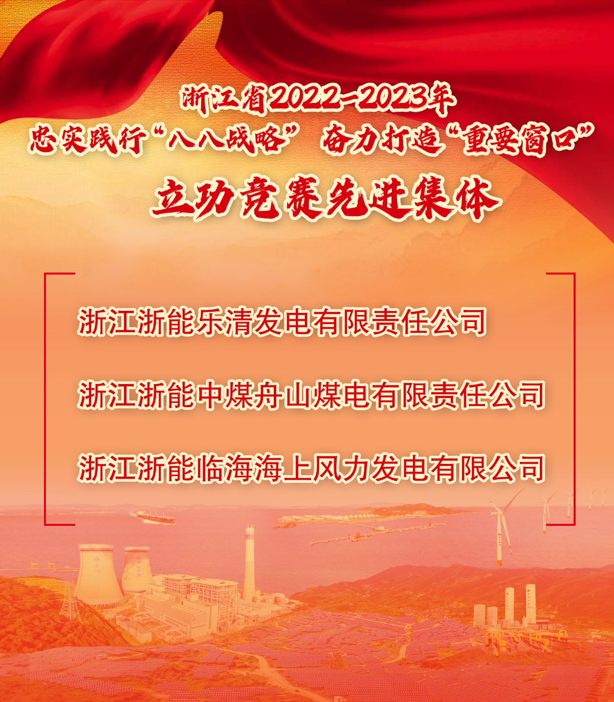 日前,浙江省人民政府公布2022-2023年忠實踐行“八八戰(zhàn)略” 奮力打造“重要窗口”立功競賽先進集體和先進個人名單,對100個先進集體和200名先進個人予以通報表彰。浙能所屬樂清發(fā)電公司、舟山煤電公司、臨海海上風(fēng)電公司榮獲先進集體。
