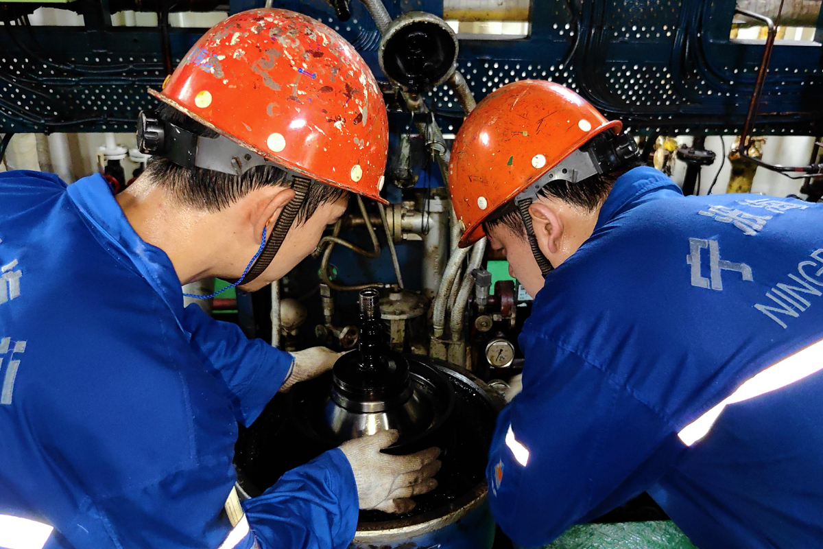 近200米長的巨輪,作業面積大,設施設備多。為保障電煤運輸和船舶安全,利用生產間隙及時做好各項維護保養工作成了寧波海運船員們的必修技能。高達60℃的滾燙船舶甲板上,船員們細致地進行著除銹、打磨、清理基面、涂刷油漆等一道道工序,用雙手換來船容船貌的蛻變。超50℃、高達100分貝的船舶機艙間里,船員們對發電機、分油機等關鍵設備的零部件進行拆卸、測量、保養、組裝,一絲不茍地做好維護保養和設備巡檢工作,讓每一臺設施設備隨時“在狀態”。