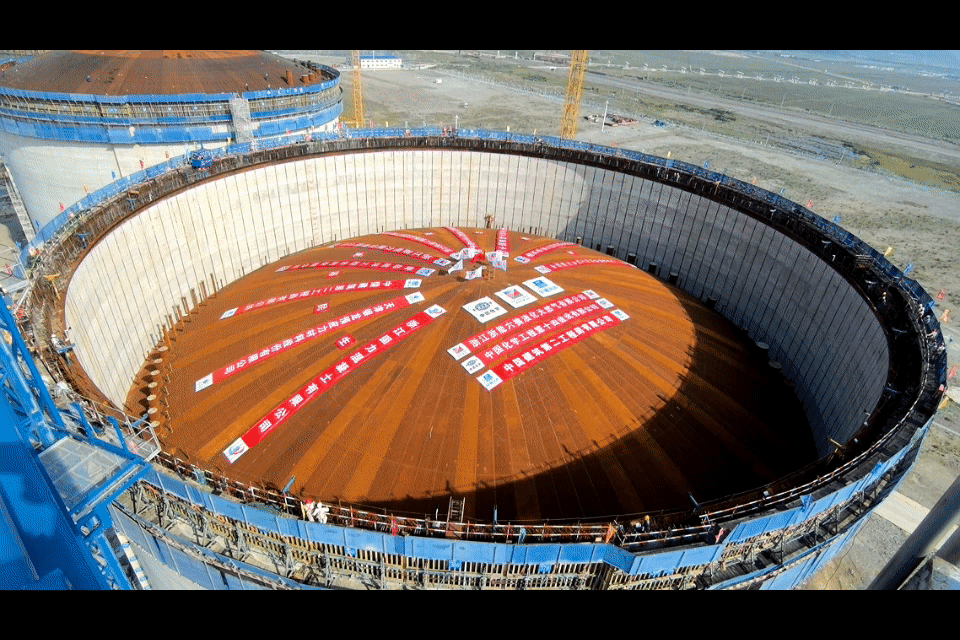 10月10日上午,在浙能舟山六橫液化天然氣(LNG)接收站項(xiàng)目1號儲罐建設(shè)現(xiàn)場,面積約1個標(biāo)準(zhǔn)足球場的千噸儲罐穹頂,在數(shù)智化“硬核科技”助力下被平穩(wěn)“吹”升,與儲罐承壓環(huán)精準(zhǔn)貼合。至此,該項(xiàng)目4座LNG儲罐氣頂升作業(yè)完美收官,儲罐從土建階段轉(zhuǎn)入內(nèi)罐安裝。