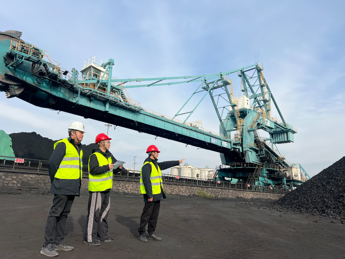 浙能富興燃料公司樂清灣駐港員日常監督場地電煤狀況。 劉洋 攝