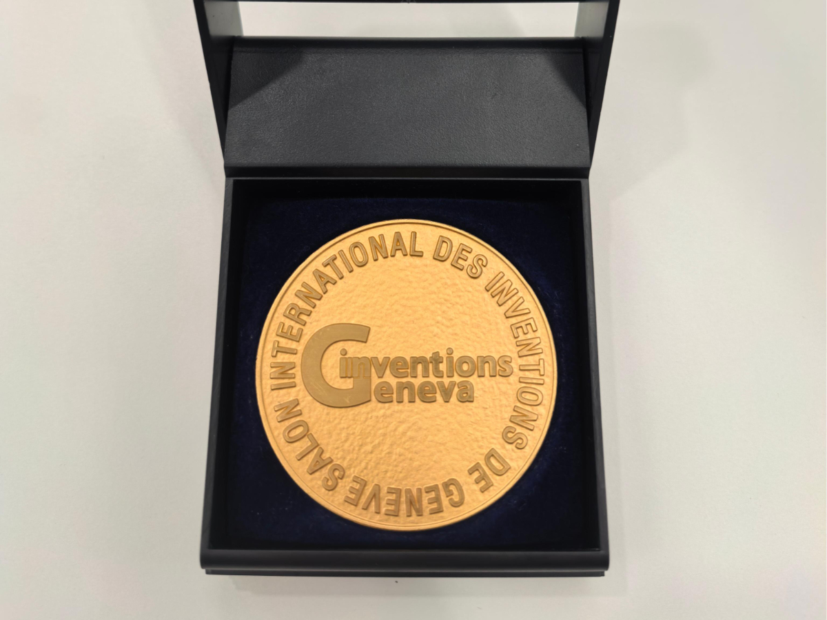 日內(nèi)瓦國(guó)際發(fā)明展金獎(jiǎng)獎(jiǎng)牌。 羅漪 攝