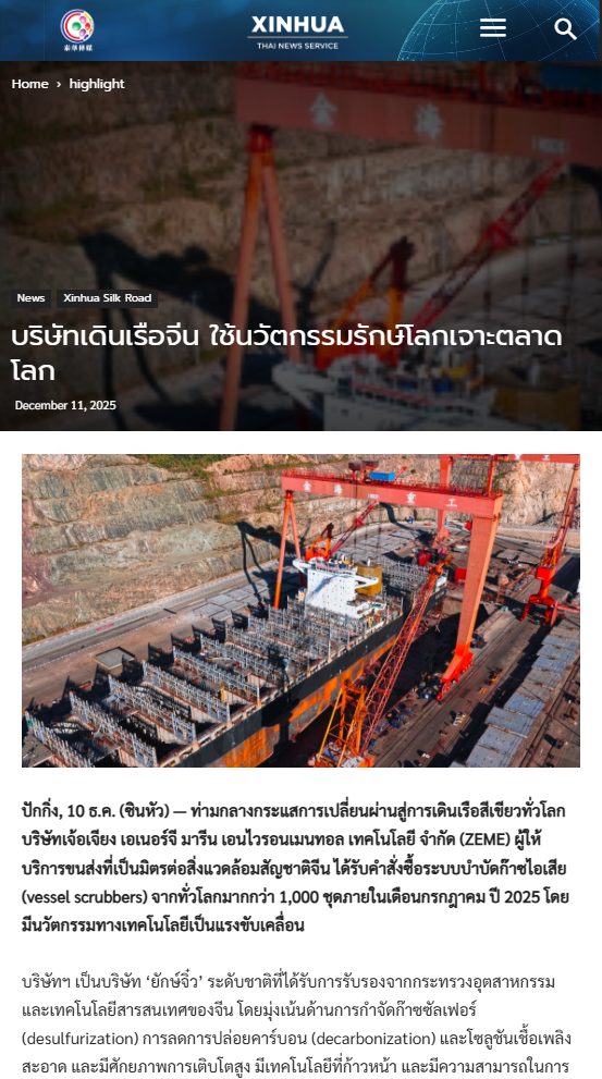 12月11日,新華社泰語網(Xinhua Thai)報道浙能邁領推動“綠色航運裝備”走向世界。 新華社泰語網(Xinhua Thai) 圖