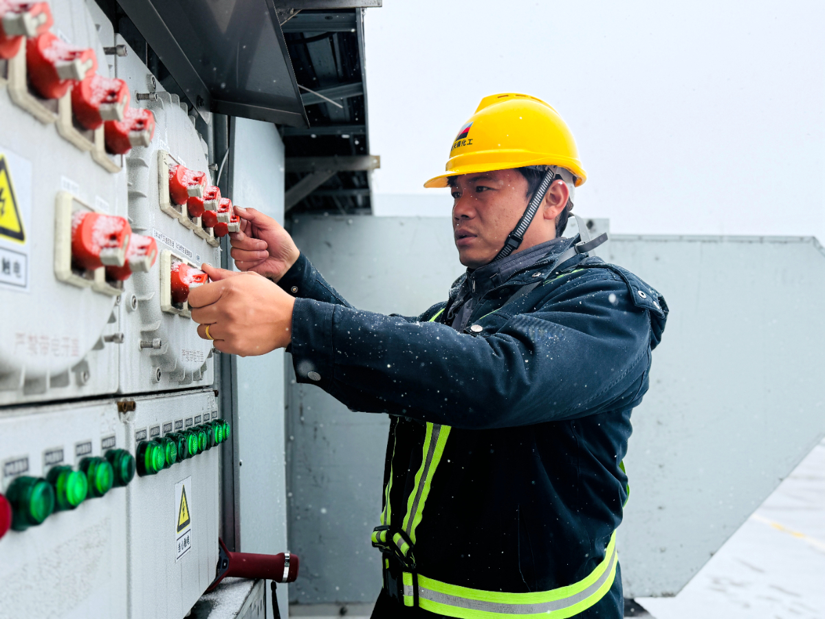 寒潮來襲,新天煤化工備煤員工檢查雨水池液位并進行排水,保障寒冷天氣下的生產安全。 彭濤 攝