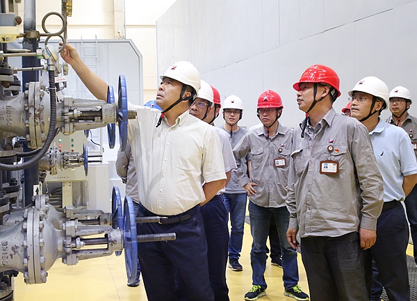 柯吉欣一行先后前往阿電儲煤場、汽機房、鍋爐廠房等生產現場,對機組設備管理等工作進行現場指導。隨后,柯吉欣來到集控室,詳細了解了阿電公司現階段機組運行情況。