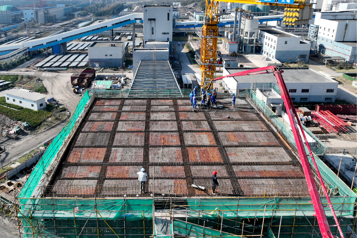 浙能六橫電廠二期工程實現碎煤機室屋面層封頂。 陳思穎 攝