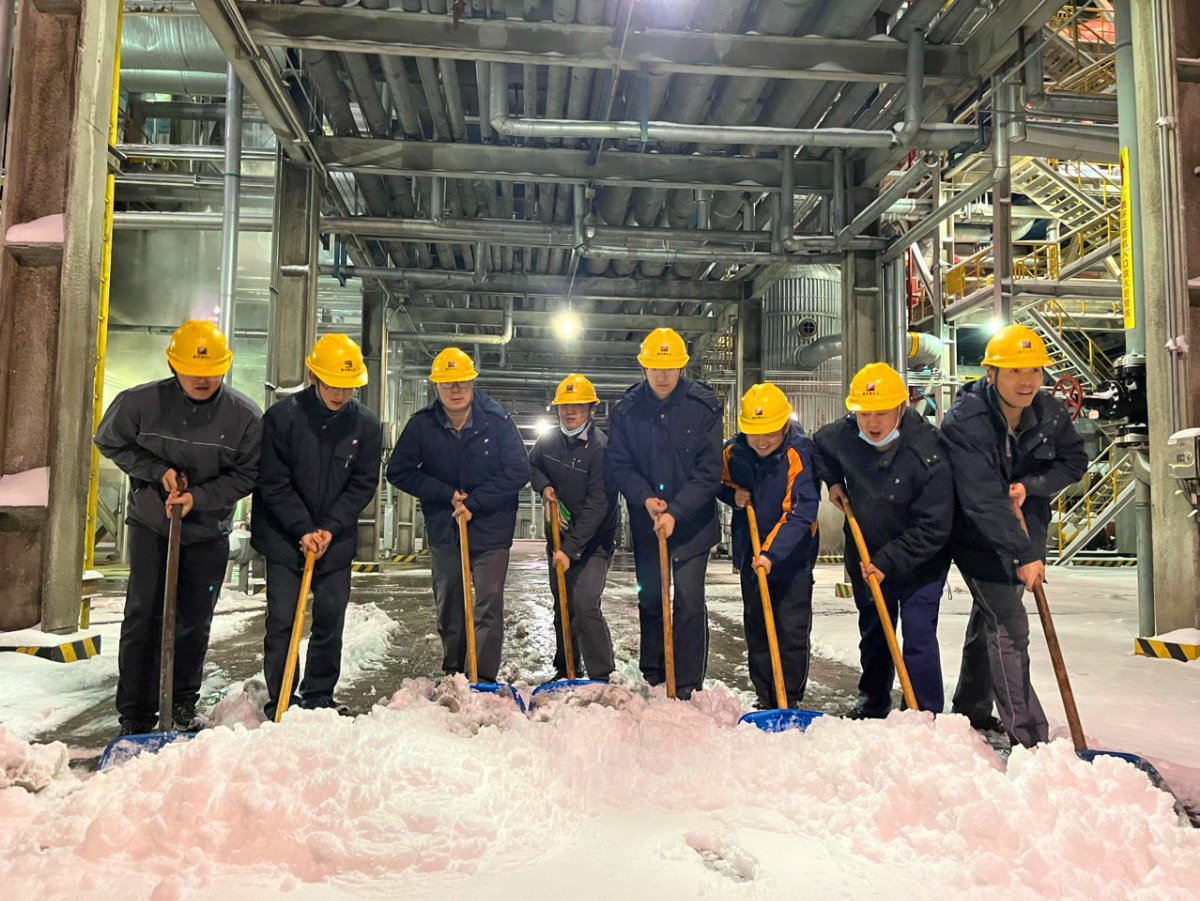 浙能新天煤化工員工清理裝置區內積雪。 周國飛 攝