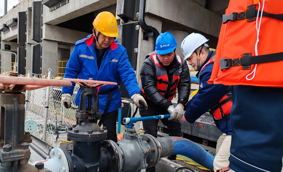 為確保蘭溪油庫順利完成首次進油,浙石油銷售公司靠前指揮、統(tǒng)籌謀劃,提前編制進油方案,組織油庫作業(yè)人員反復實地演練,完善安全風險分析及評估,落實各類應急處置方案,逐項檢查復核各環(huán)節(jié)。作業(yè)當天,現(xiàn)場人員專業(yè)高效完成取樣計量、油品化驗、設備檢查、閥門確認等流程,嚴陣以待迎接首輪油的抵達。