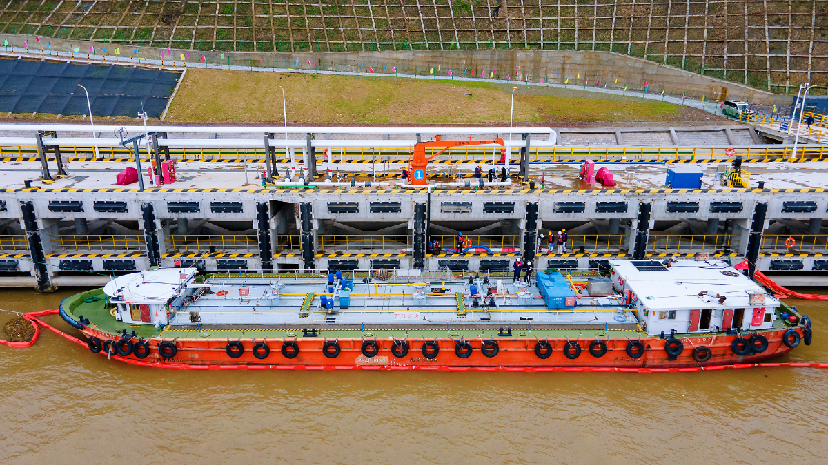 “一切檢查完畢,具備接卸條件!” “開始卸油!”3月6日上午10時48分,坐落于蘭溪市蘭江畔的浙石油蘭溪油庫內(nèi),隨著進油現(xiàn)場總指揮一聲令下,油庫碼頭正式啟泵,“兆平6666”油船466噸柴油沿著配套管道緩緩注入油庫D01儲罐。這是該油庫具備運營資質(zhì)以來首次進油,有力開創(chuàng)油庫運營新局面,奮力奪取一季度“開門紅”。