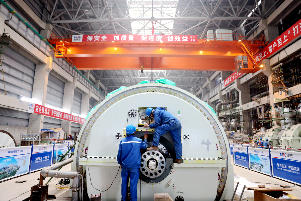 六橫電廠二期工程3號(hào)汽機(jī)房建設(shè)場(chǎng)景。 陳思穎 攝