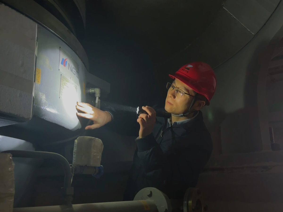 2月10日,大年初一,嘉興電廠四期工程部主任方亮到現(xiàn)場檢查安全施工和零部件準(zhǔn)備工作。 王侃 攝