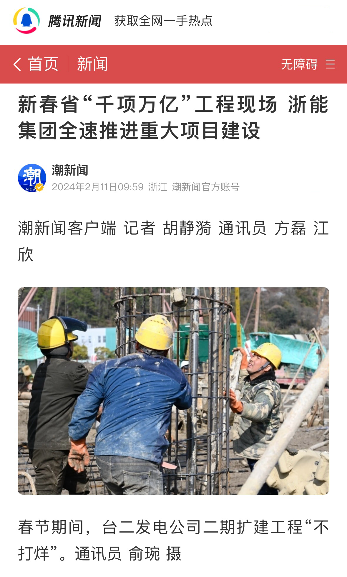 騰訊新聞報道《沖刺“開門紅”浙能集團(tuán)推進(jìn)“千項萬億”工程建設(shè)不停工》。 騰訊新聞 圖