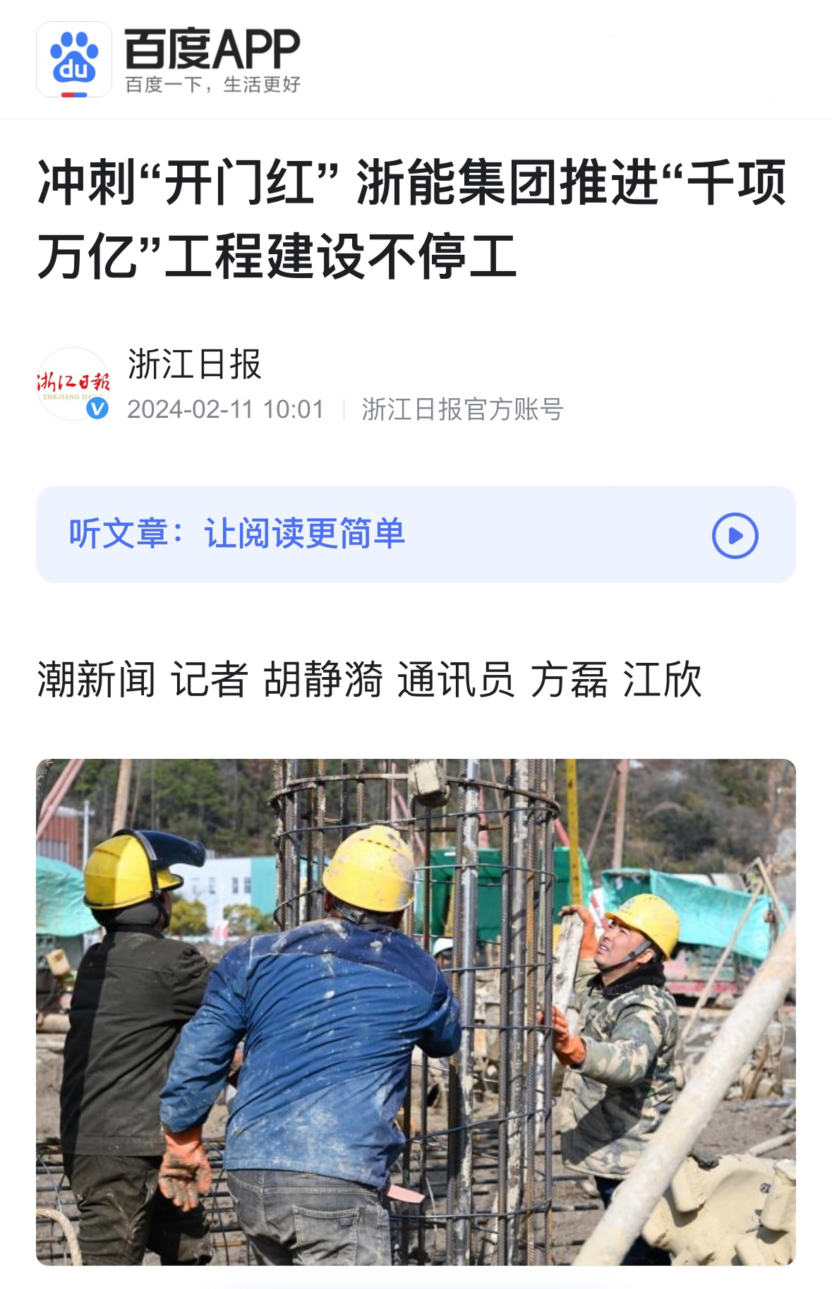 百度百家號報道《浙能集團(tuán)推進(jìn)“千項萬億”工程建設(shè)不停工》 百度百家號 攝